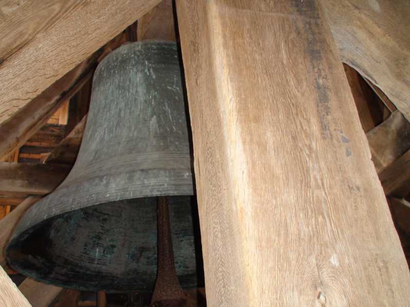 La cloche donne la note ré. Couplée à l’horloge du clocher elle sonne chaque heure et demi-heure.
